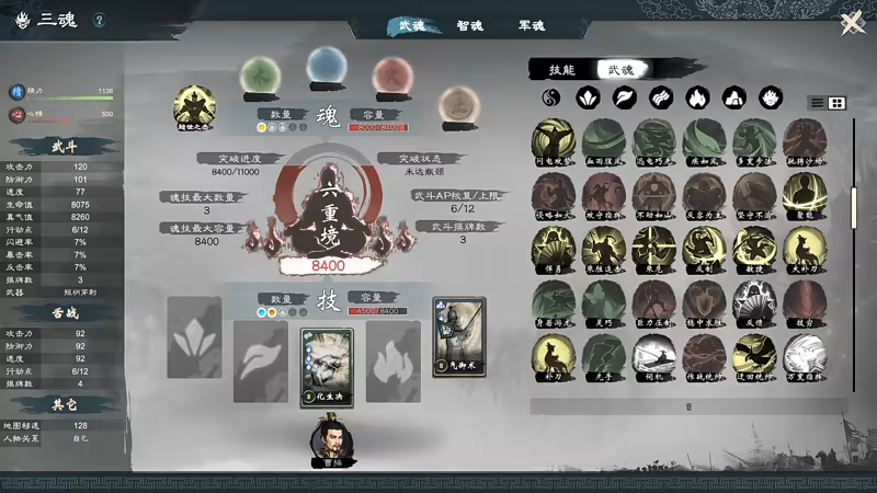 • 多种核心战斗模式:包括军团战、武斗和舌战。军团战采用即时战略制,玩家需通过歼灭敌军、占领敌方建筑来达成胜利;武斗和舌战则采取回合卡牌制。为提升在三种战斗中的表现,玩家需要提升每个武将的军魂、武魂和智魂,积累三魂点,并学习装备特殊的魂和技。
