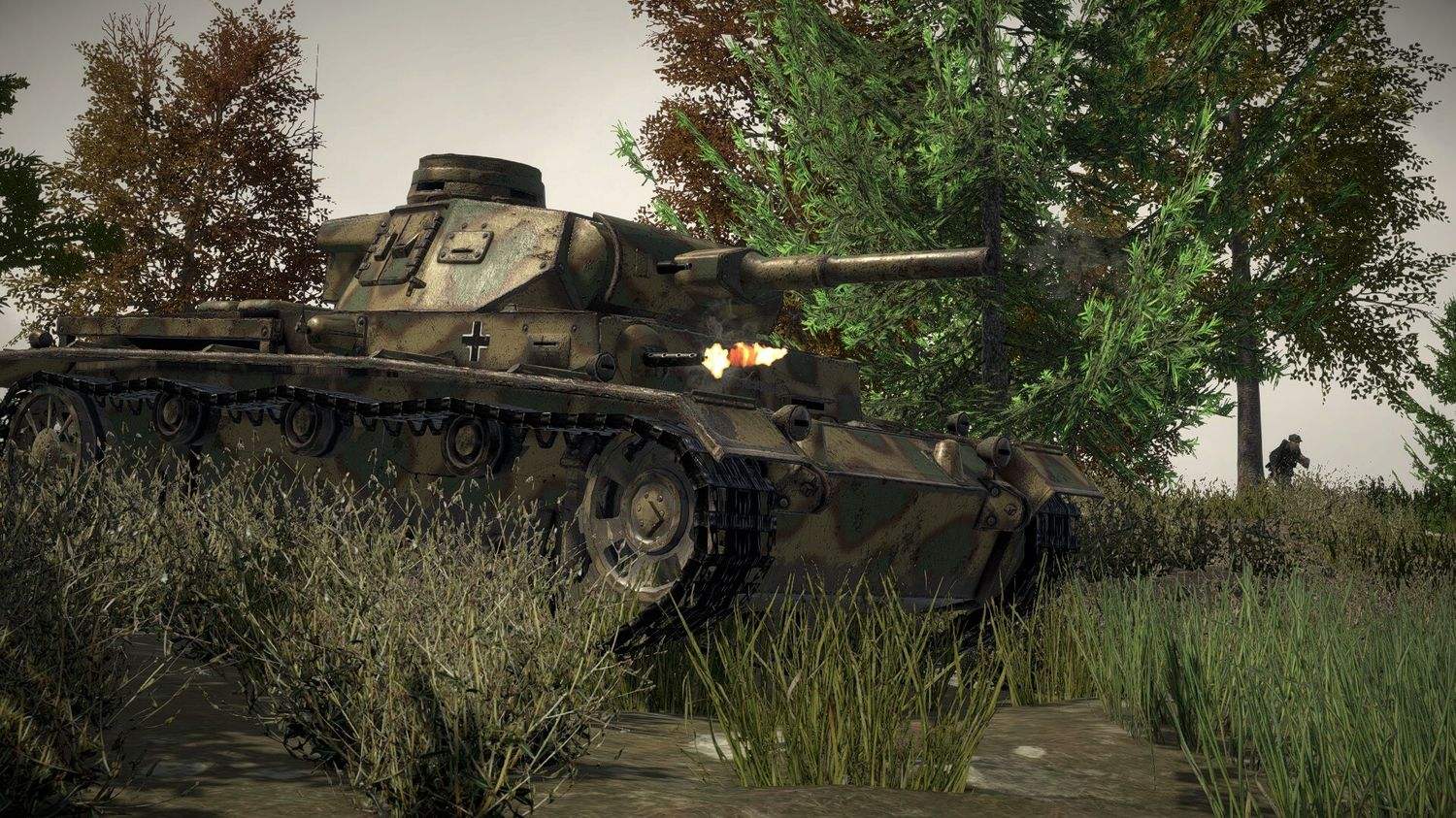 我们决定给予玩家们载具的完全控制。只要坦克里每个武器都有人操纵,玩家们能驾驶坦克并射击。即使坦克不能动了,战事也不会停歇。而且,即使坦克被击破,战事也不会停。很多二战时的坦克兵都能及时逃脱无法继续运作的坦克,并从战斗下存活下来,所以在 Easy Red 2 里也可以。如果你失去了坦克,你需要将组员安全带回战线。
