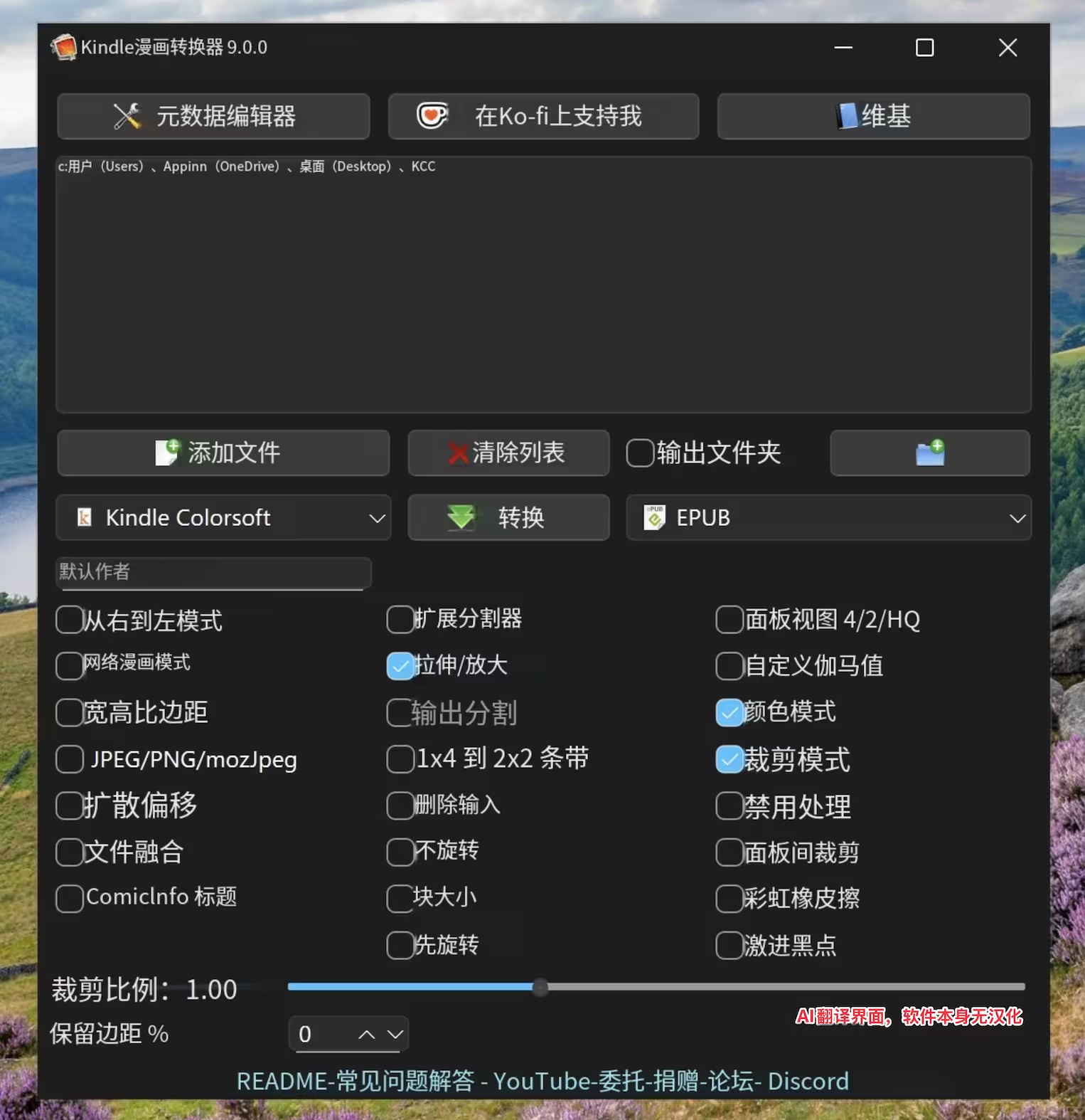 KCC 是一个把图片、漫画等文件,批量转换成电子书格式的开源工具,支持 EPUB、MOBI、PDF、CBZ 电子书格式,并能自动优化排版和适配墨水屏阅读器的屏幕。跨平台支持 Windows、macOS、Linux。