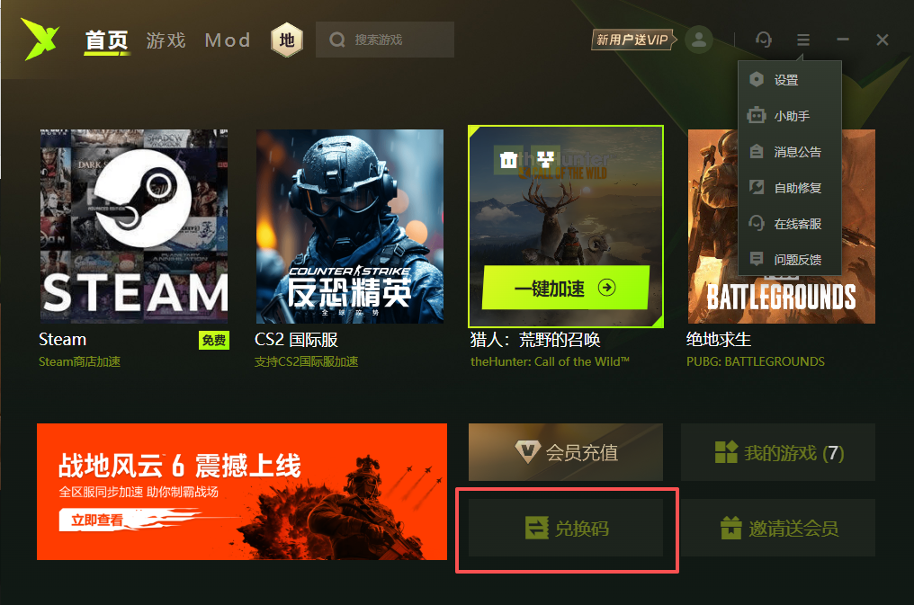 新用户注册登录可获取24小时免费游玩时间,使用兑换码可获得7天不限时使用,新人开通会员首月仅1元。