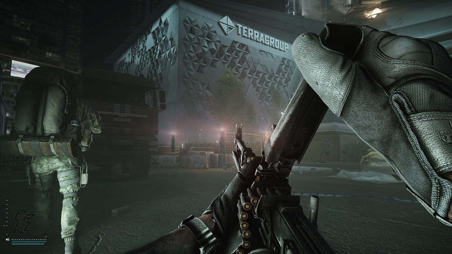 The game features realistic combat with firearms, blood effects, injury mechanics such as bleeding and limb damage, and occasional strong language.