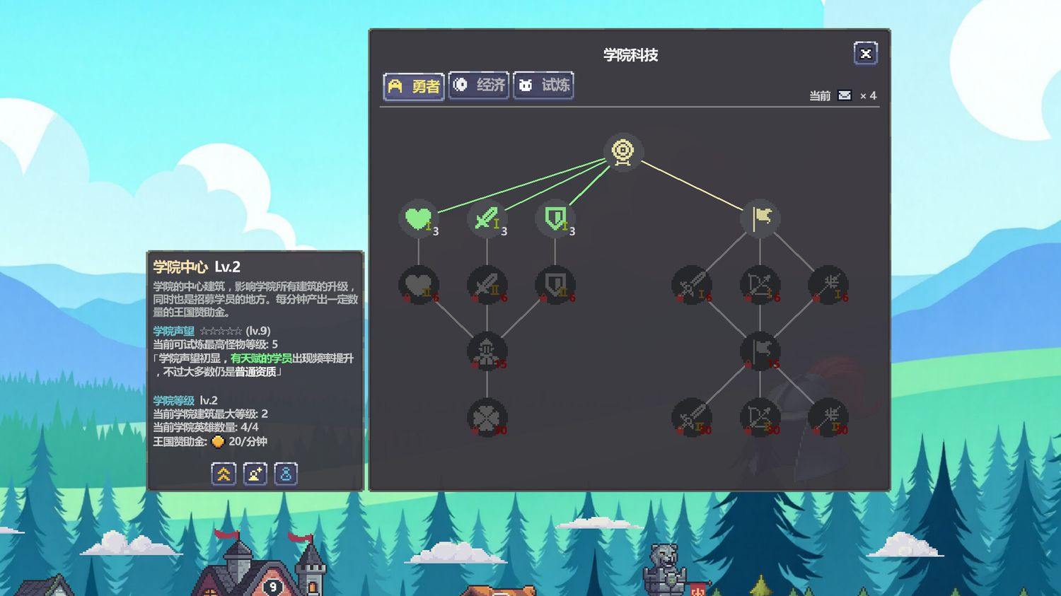 本游戏的核心设计哲学在于“迭代与传承”,让您的每一次投入都化为永久的积累。当勇者达到等级上限,您可以选择让他们“毕业”,这并非失去,而是战略性的投资。通过毕业的勇者留下的【传承信】,用以在学院科技树中解锁永久性的全局增益,建造荣誉殿堂,让毕业的传奇们源源不断地为您带来金币回报。每一次毕业,都在为您打造学院添砖加瓦,让您的下一代勇者,赢在更高的起点!