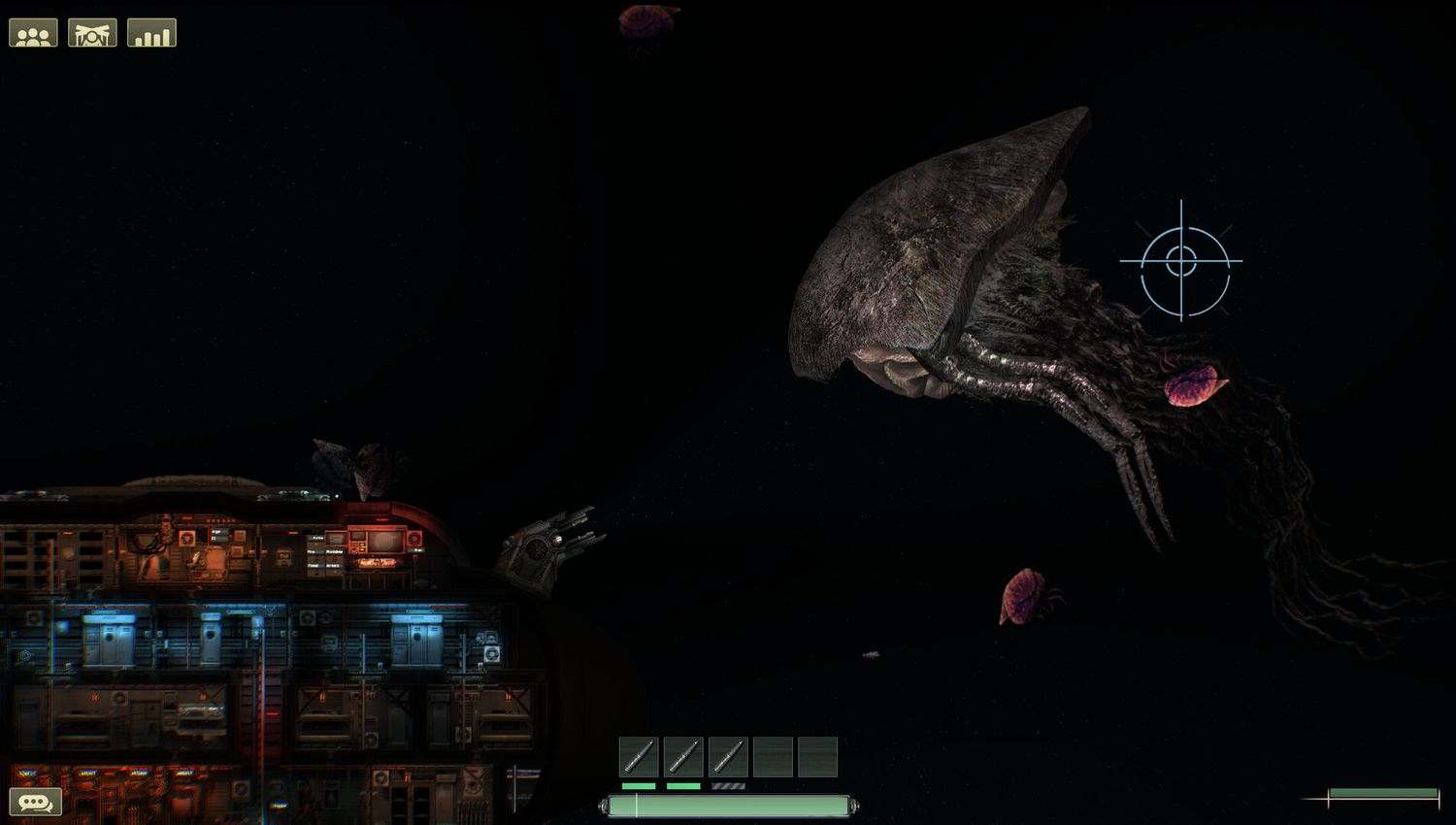 - 多人模式下能获得最佳体验,一辆潜艇能容纳2–16名玩家。根据需要为玩家补充机器人;你也可以使用单人模式,现正在进一步开发。